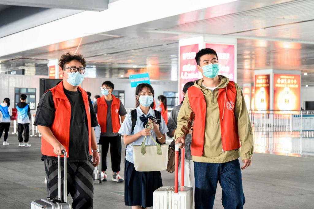 夜色未去,晨光熹微,身着统一服装的志愿者们从学校出发,踏上接站的路程,开始了一天的工作。为了让新生报到不迷路,志愿者们一直坚守在高铁站、火车站的出站口,等待新生的到来。