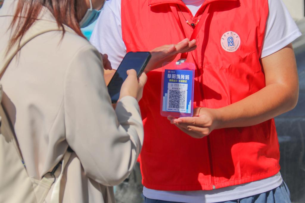 伴随着清晨的第一缕阳光,志愿者们已到岗就位,全天候、全过程、全方位,守护新同学。校门口,学校设有新生报到专用通道,迎新期间,党员教师志愿者发挥先锋模范作用,他们拿起手中的测温枪,为每一位到来的新生测量体温、行李消毒、检查健康码、行程码和48小时内核酸检测证明,一丝不苟,一连四小时,阳光照在他们戴口罩的脸上,汗水反射的斑驳印记清晰可见。他们是新生入校的第一道屏障,把好校园疫情防控的铁闸。