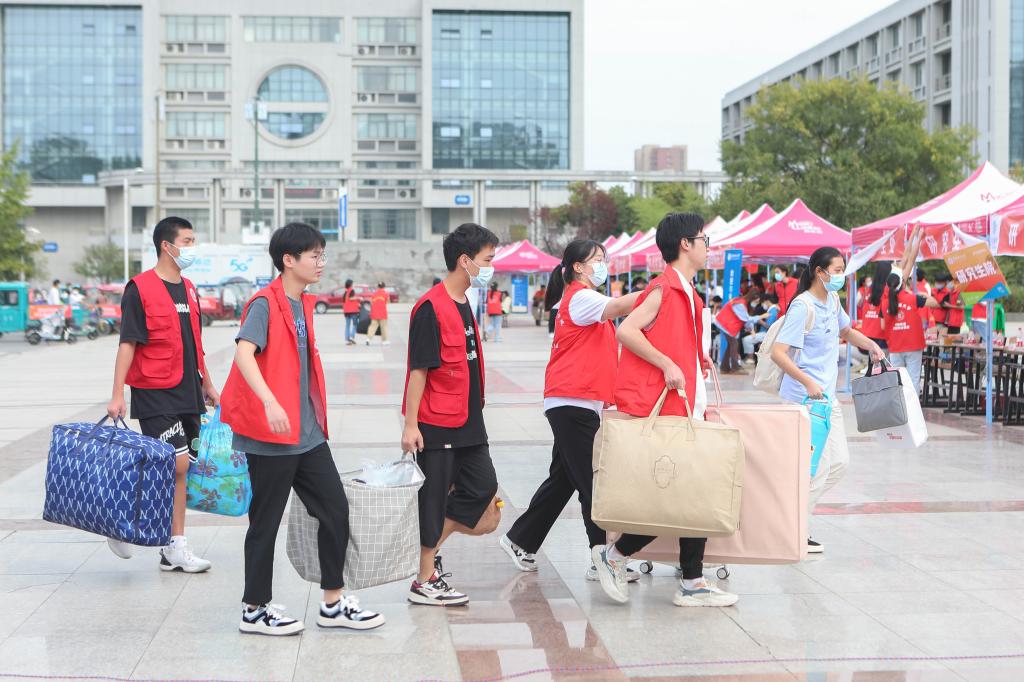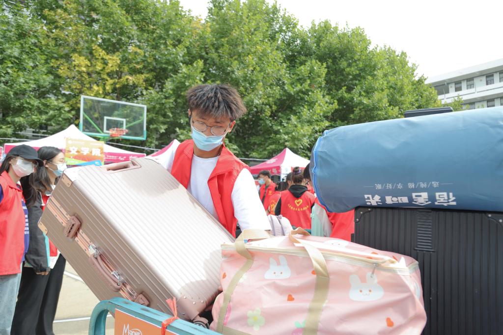 从明确清晰的校园地图到秩序井然的校内引导,从后勤保障的物资输送到支援全场的行李搬运。校园内处处都活跃着青年志愿者们的身影。志愿者们接力行动,引导新生注册报到,协助新生搬运行李。志愿者亲切地吆喝,从家长手中接过新生的行李,无声的对视传递着浓浓的志愿温暖。
