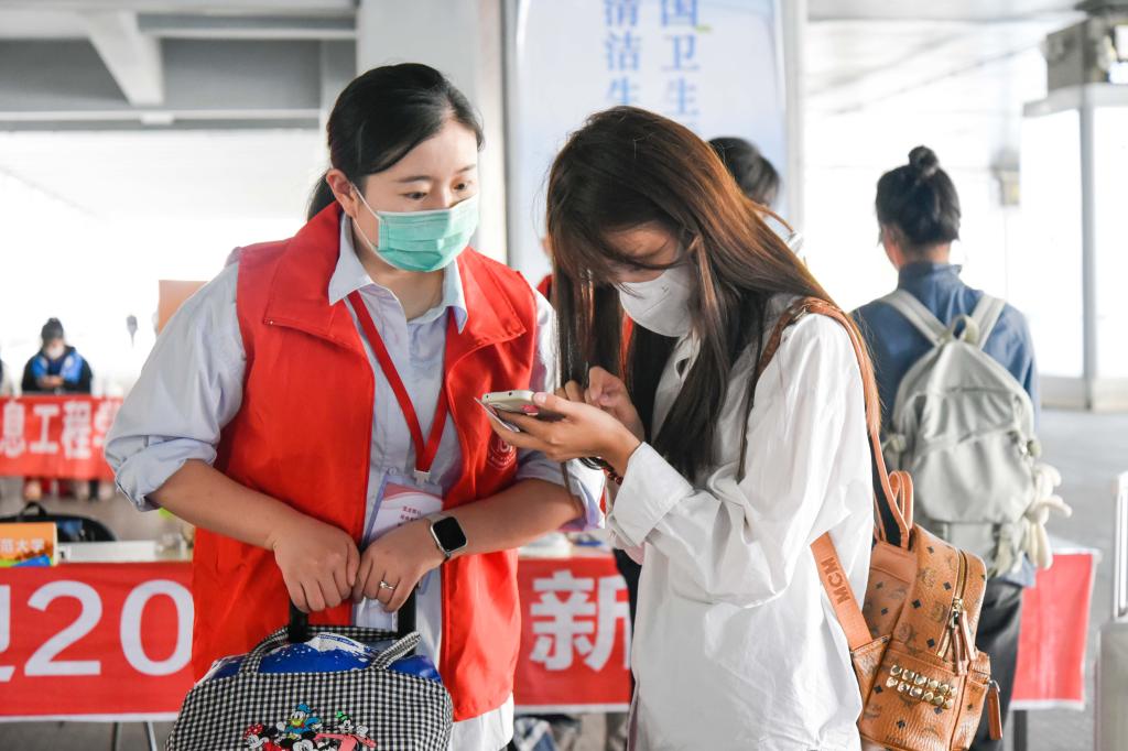 为确保2022级新生安全便捷入校。学校提前筹划部署,在高铁站、火车站安排迎新专用车,组织多名学生志愿者奔赴站点做好信息咨询、交通引导、行李搬运等志愿服务。确保新生接站无滞留、无积压、运力无空缺,实现迎新从站点到校区的无缝衔接。团委崔曼丽老师说道:“我们引导新生在高铁站完成报到流程,然后搬运新生行李,指引他们乘坐校园大巴或者城市大巴直接到达各校区。校园大巴上还有学生志愿者向新生介绍我校校情校貌的讲解,让新生感受到学校的浓浓热情,真正做到让学生放心,让家长安心。”