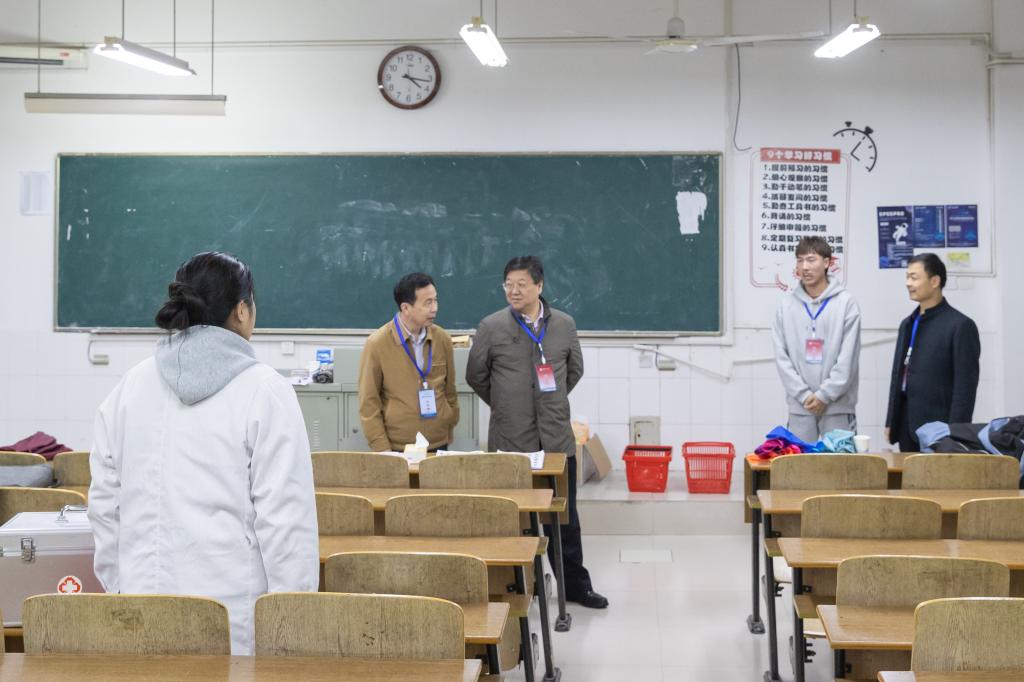 程曦来到学校标准化考场和考务办公室等场所进行实地检查,现场查看考场分布、考场设置、考场环境和考场纪律等情况,详细听取了相关部门负责人和工作人员关于试卷保管、考场管理、考务培训、后勤保障等方面的工作汇报,对一线考务工作人员的辛勤付出表示感谢。