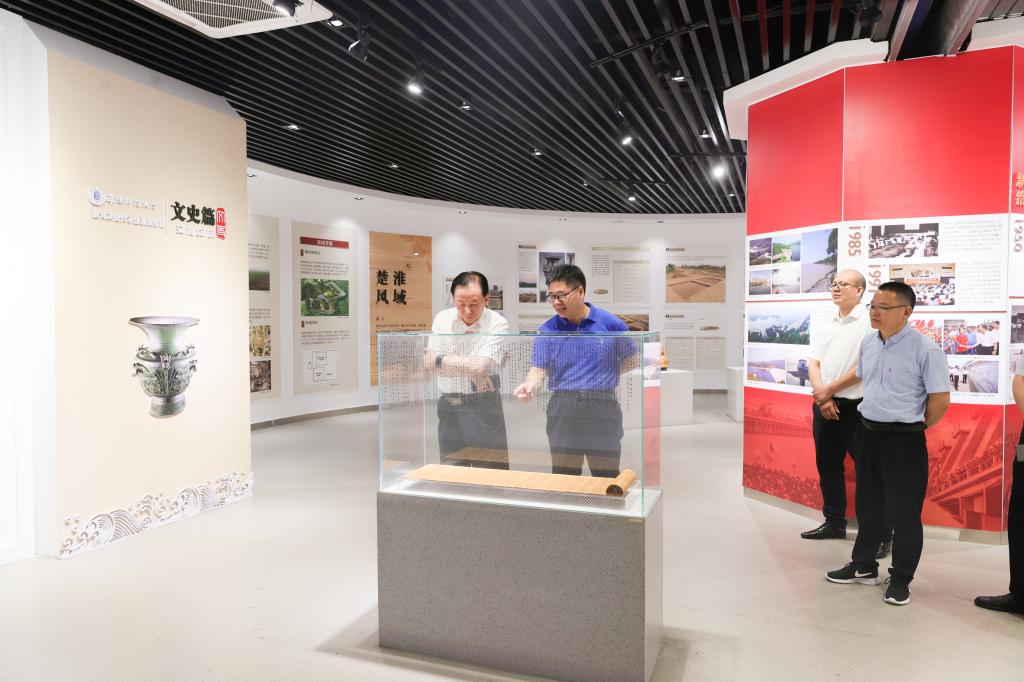 座谈会前,张庆旭陪同蔡新立参观我校校史馆、淮河文化馆、美术学院艺术展馆等。