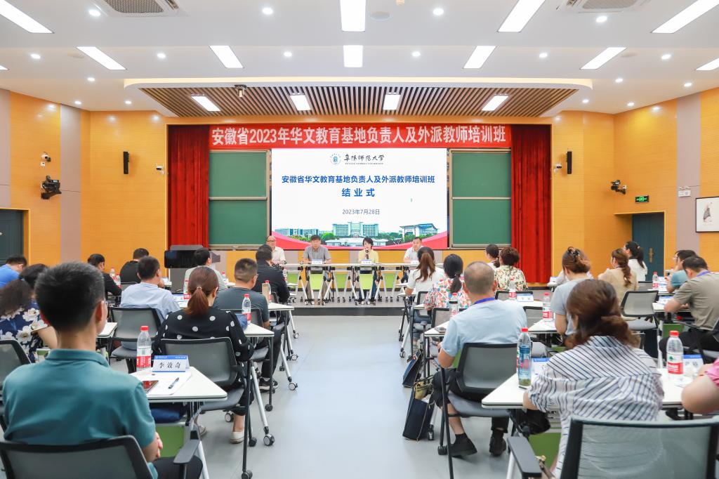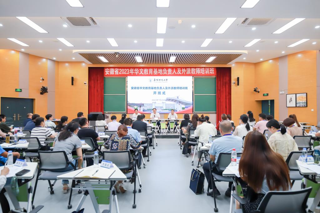 7月26日至28日,安徽省2023年华文教育基地负责人及外派教师培训班在我校西湖校区举办。校党委副书记、校长方廷勇出席并主持开班仪式,省委统战部侨务处二级调研员李光浩,阜阳市委统战部常务副部长、市台办主任、市侨办主任王显明出席开班式,我校党委统战部、文学院、国际合作与交流中心等单位主要负责人参加了开班式。2个国家级华文教育基地和23个省级华文教育基地的负责人及19位外派教师参加了培训。