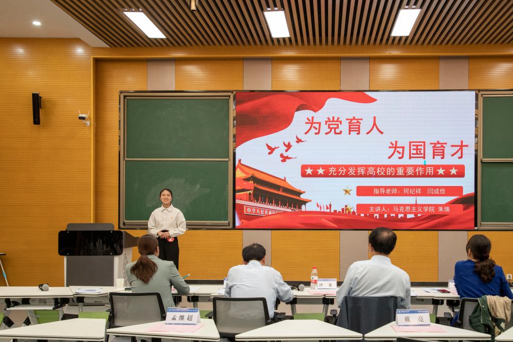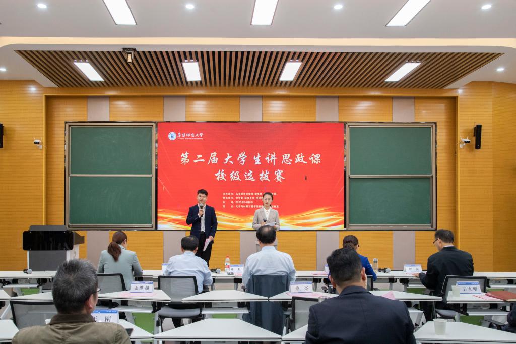 10月8日上午,我校第二届大学生讲思政课校级决赛在西湖校区化学与材料工程学院一楼智慧教室举行,来自各学院27位选手(团队)角逐分课程分赛道的一、二等奖。校党委副书记涂红松出席并致辞。活动邀请安徽农业大学人文学院院长黄洪雷教授、中国科学技术大学马克思主义学院魏荣教授、安徽科技学院马克思主义学院王有炜教授、皖西学院马克思主义学院院长吴学东教授、阜阳幼儿师范高等专科学校马克思主义学院院长何丽娜教授等专家担任评委。学校相关职能部门负责人和各学院党委(党总支)书记、副书记全程观摩比赛。