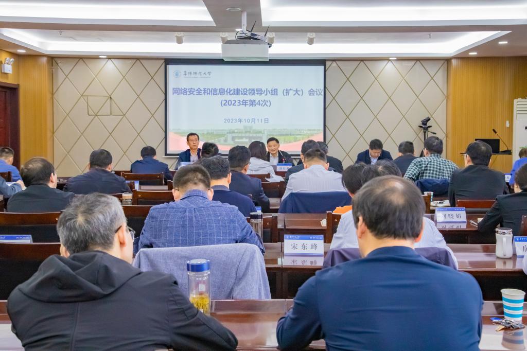 10月11日下午,学校在西湖校区正行楼1302会议室召开网络安全和信息化建设领导小组(扩大)会议。校党委副书记、网络安全和信息化建设领导小组副组长涂红松,校党委常委、副校长、网络安全和信息化建设领导小组副组长张庆旭,校党委常委、纪委书记、监察专员季爱新出席会议,网络安全和信息化建设领导小组成员单位主要负责人及各单位、各部门网络安全主要负责人参加会议。张庆旭主持会议。