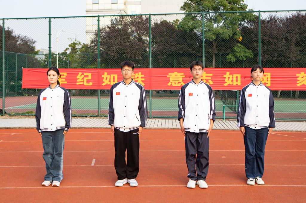 站定如松,目光坚毅,身姿挺拔,面庞严肃。飒飒军姿彰显青春力量,骄阳不减青年韧劲。阳光在枝桠间割裂,光影在叶隙间斑驳,每片纹路都写着成长的脉络。红色跑道无限延长,绿茵操场永远热烈,汗水勾勒面庞,微风牵起发梢,新生们用实际行动证明:今日多少凌云志,化作豪情意飞扬。