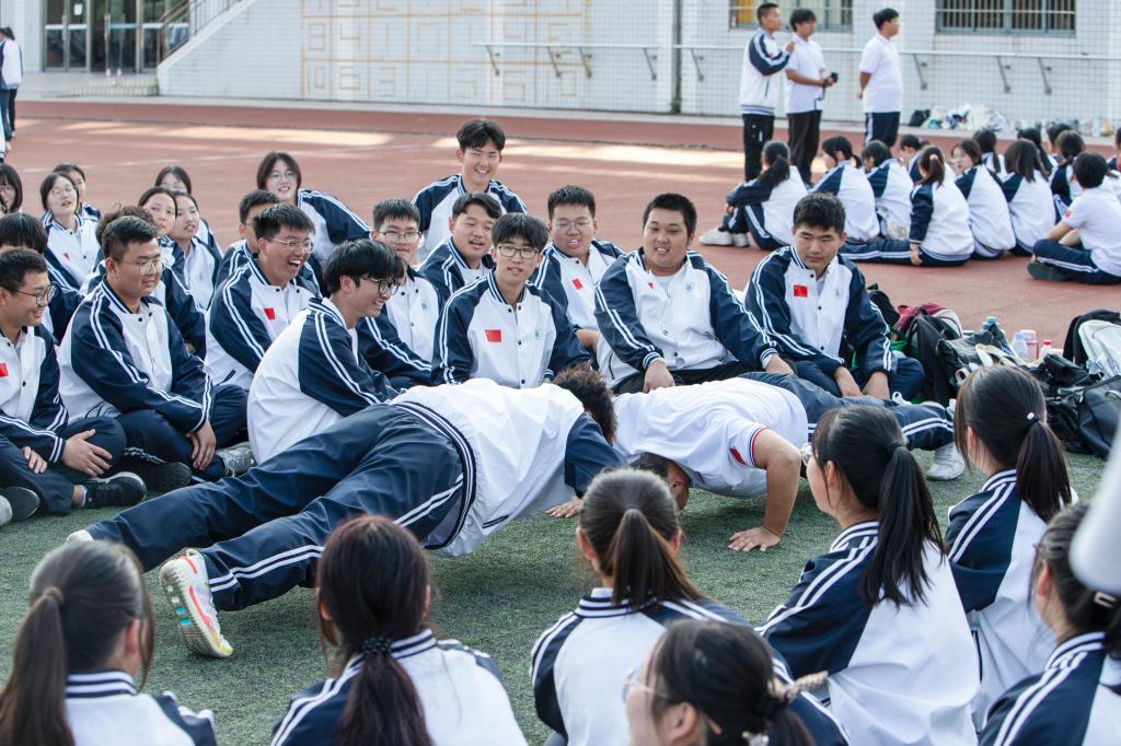 紧紧摁上每一枚纽扣,细细抹平每一处褶皱,轻轻理好每一边衣角,规整的校服穿出正气模样。训练时,要求严格。站位整齐,摆臂同频;步调一致,默契十足;团队协作,无人放弃;磨炼意志,铸就辉煌。除了挺立的“松柏”们,各色背包、各式的水杯,在相应的位置摆放整齐。一切都是那么的井然有序,团结地激活军训关键词“整齐”。