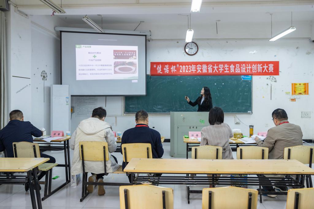 “食”路相逢聚佳肴美味,“烹”然心动品人间温情。12月9日,由安徽省教育厅主办,我校与省普通高校食品科学与工程类专业合作委员会承办的“‘健诺’杯第八届安徽省大学生食品设计创新大赛”在西湖校区举行,来自全省23所本科院校、8所高职院校的约600名师生参加了总决赛。