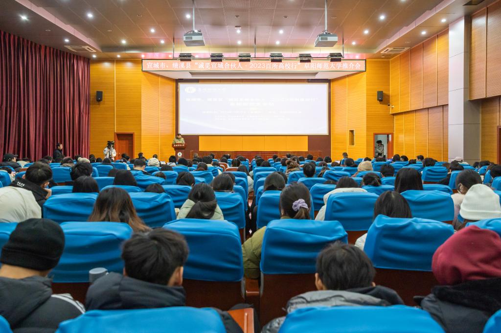12月15日,宣城市“诚觅宣城合伙人·2023百所高校行”活动在我校西湖校区举办。宣城市人民政府副市长杨林秀,我校党委副书记涂红松,宣城市教体局局长陈自水,绩溪县人民政府副县长汪全胜等参加活动。