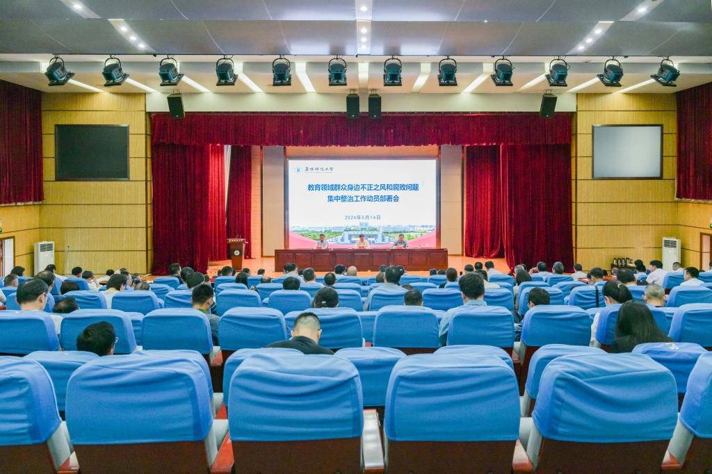 5月14日下午,学校在西湖校区正行楼二楼报告厅召开群众身边不正之风和腐败问题集中整治动员部署会。校领导程曦、方廷勇、季爱新出席会议,各二级党委(党总支)和相关职能部门主要负责人参加会议。会议由校党委副书记、校长方廷勇主持。