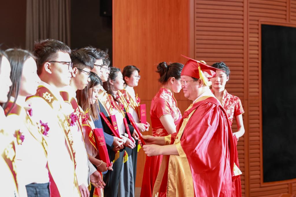 校领导和各学院院长分别为毕业生代表授予学位并拔正流苏。33组学生完成仪式后,本次毕业典礼暨学位授予仪式圆满完成。