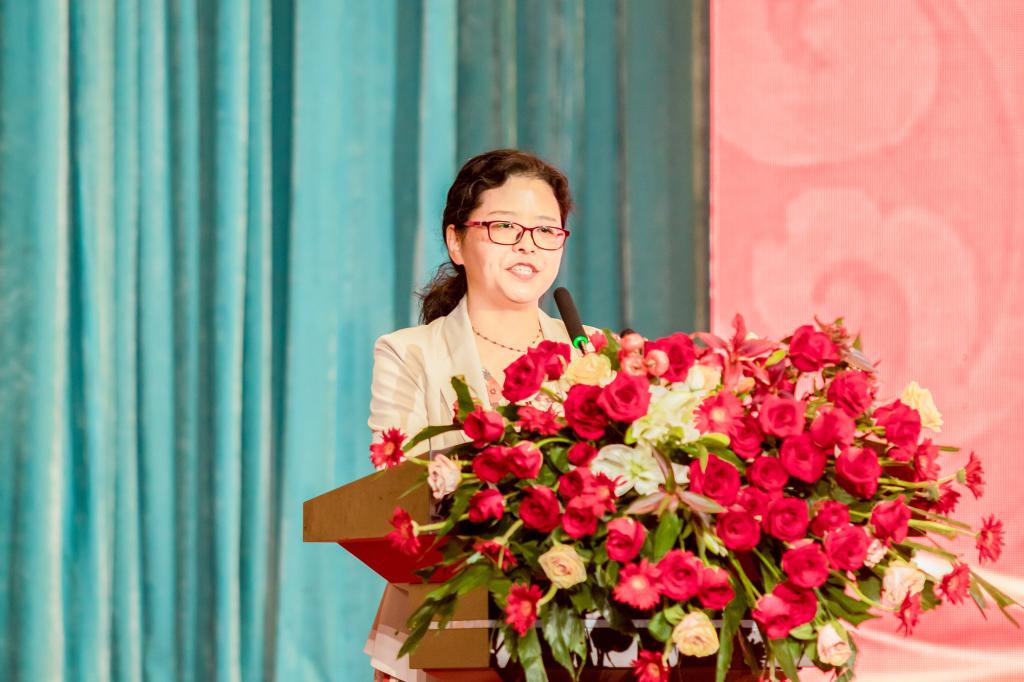 文学院教授、硕士生导师、中国古代文学博士后、《阜阳师范大学校歌》词作者、中国词学研究会理事郑虹霓老师代表全体教师上台发言。作为1995届学校本科毕业生及学校教师,她对毕业生的未来发展,提出了建议,要有梦,有志向,勇于担当;要修身,包括加强个人修养与休养生息,维护身心健康;要勤学,向书本学,向实践学;要乐群,会与不同的人打交道,好好相处,宽容友善;要关注母校的发展,用幸福与成功擦亮阜阳师范大学的校名。并祝各位毕业生前程似锦,一路顺风。