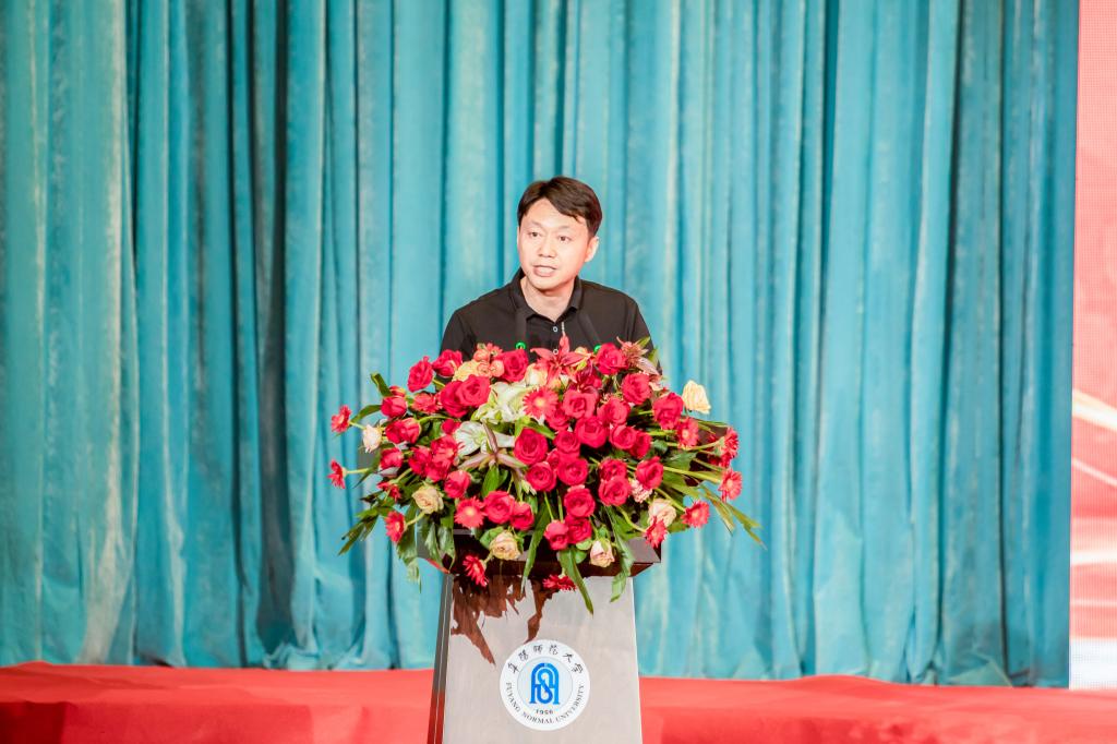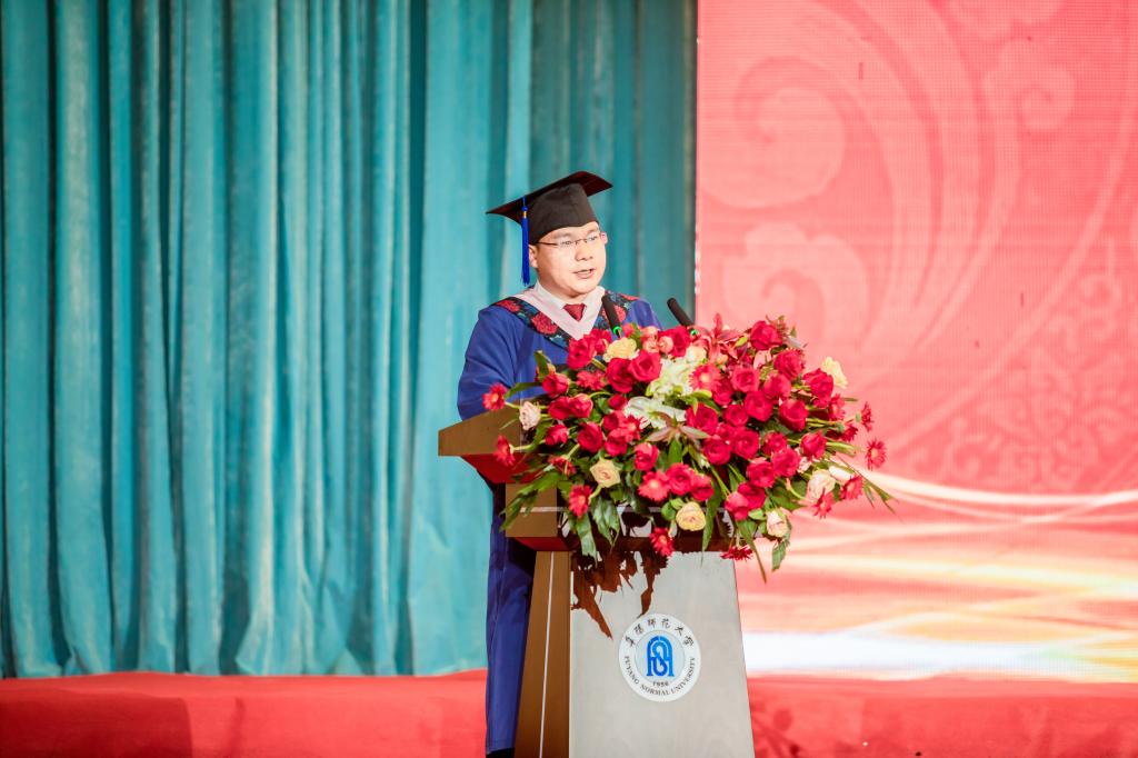 生物与食品工程学院2020级生物科学(师范)2班曾子晗的父亲曾仕平,代表毕业生家长上台发言。他感慨道,回首孩子四年的大学生涯,最难忘的是师生、同学间的和睦相处与无私帮助。阜师大教师们严谨的治学风格、同学们勤奋刻苦的好学精神都潜移默化地影响着一代代学子。他希望同学们继续弘扬“艰苦奋斗、自强不息、厚德育人、求真务实”的学校精神,秉承“厚德、博学、 自胜、勤行”的学校校训,做一个时代好青年。