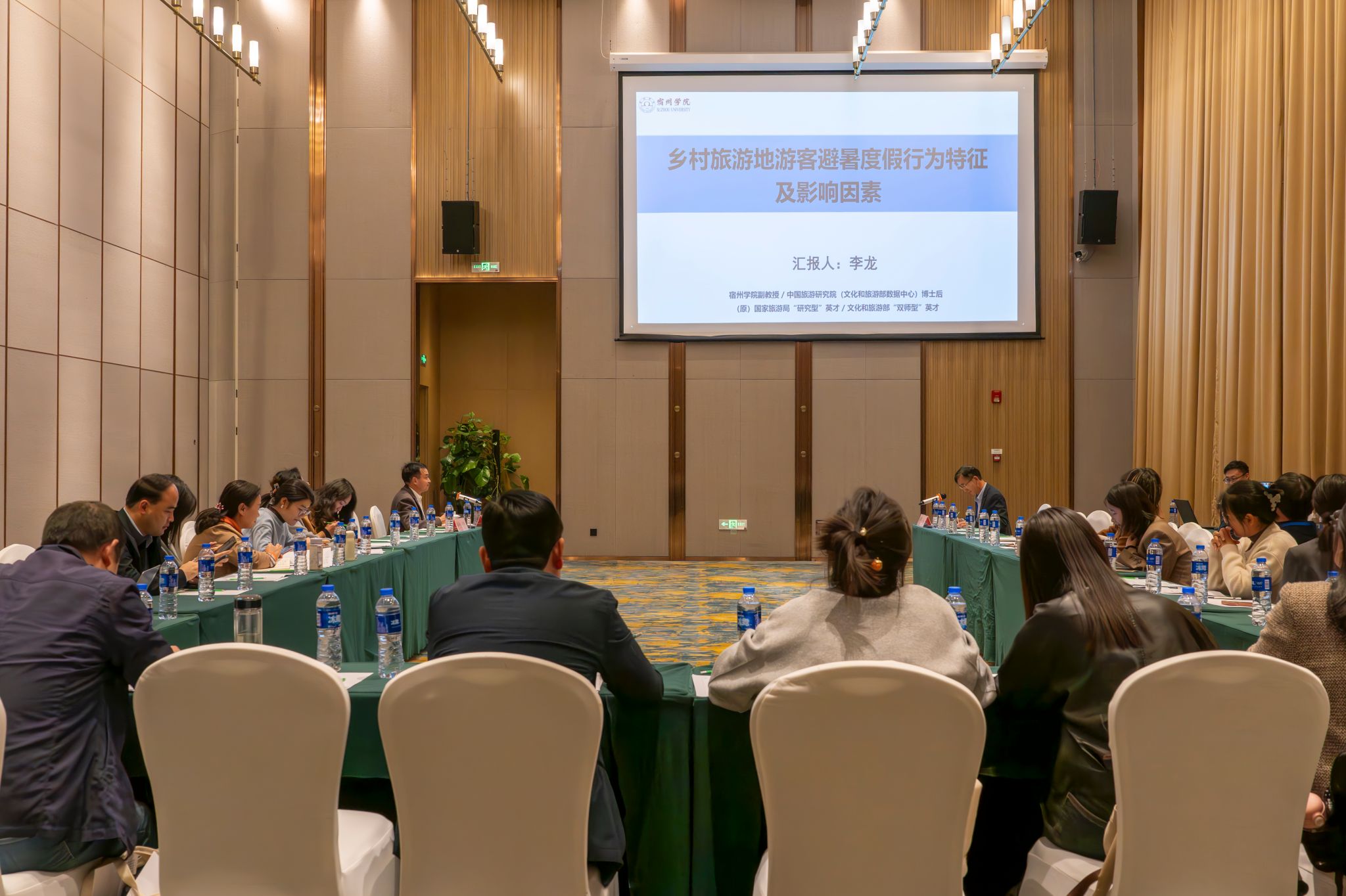 历史文化与旅游学院院长梁家贵主持年会主旨报告。安徽师范大学地理与旅游学院博士生导师陆林教授、上海师范大学旅游学院张圆刚副教授、安徽大学商学院副院长李东和教授、安徽环球文旅集团总裁徐华玉教授等知名专家学者分别作了题为《新质生产力赋能旅游业高质量发展的概念矩阵与研究展望》《〈旅游科学〉期刊发展与选题》《深化文旅融合,推动安徽文旅产业高质量发展》和《人才,文旅企业转型发展第一生产力——从文旅企业人才需求给高校人才培养的启示》等系列主旨报告。
