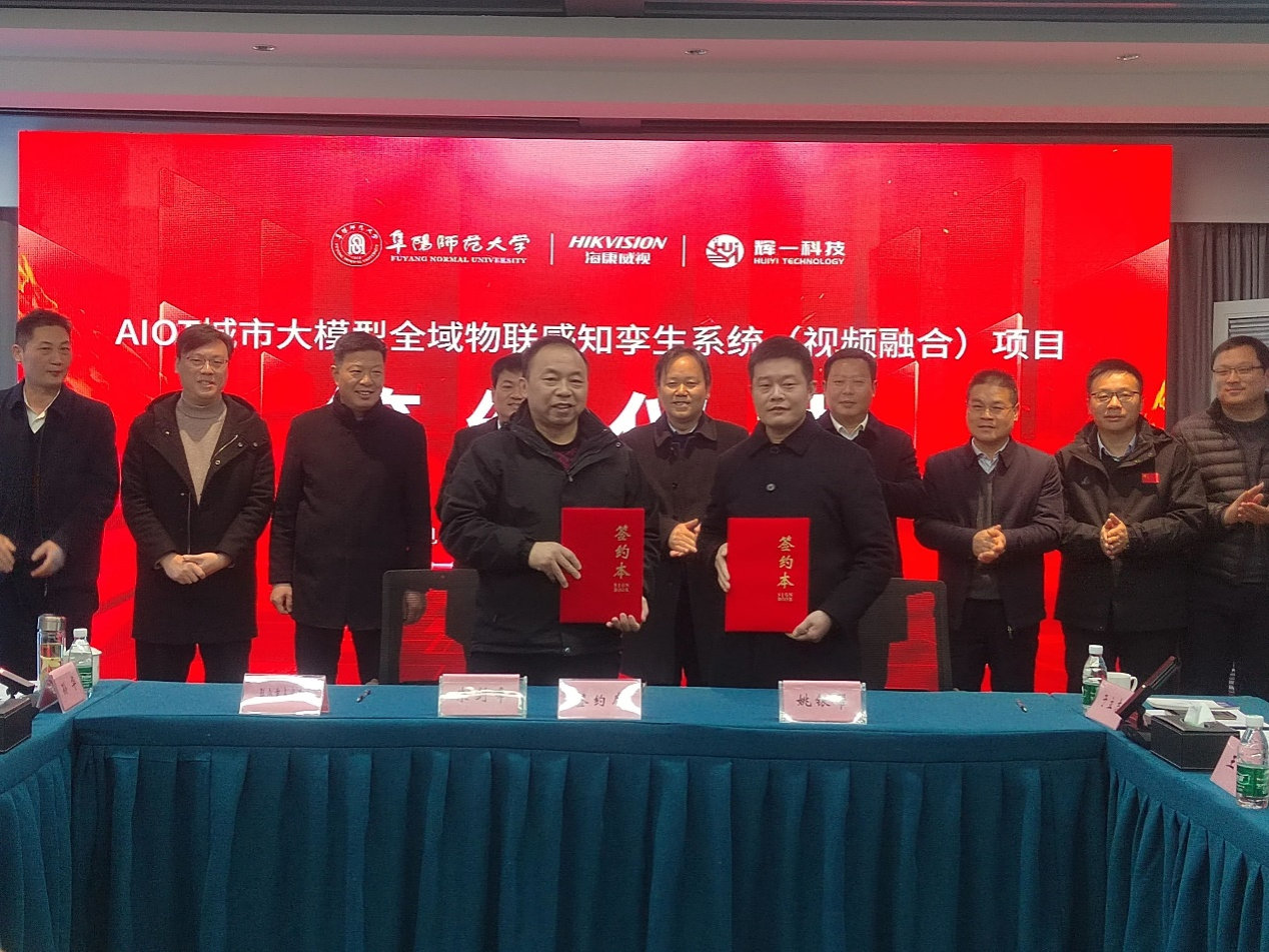 12月12日上午,“安徽省智慧城市精细化管理联合共建重点实验室” 揭牌仪式在阜阳软件产业园辉一科技多功能会议室举行。该重点实验室为我校与安徽辉一科技股份有限公司、杭州海康威视数字技术股份有限公司联合共建。学校党委副书记、校长方廷勇,阜阳市数据资源局党组书记、局长柳飞,市科技局党组书记、局长曾认,颍州区委副书记童坤,安徽辉一科技股份有限公司董事长周涛,颍州区相关职能部门负责人和相关企业代表以及我校科研处、政企对接合作处、商学院相关负责人和联合共建重点实验室代表、团队教师等参加了揭牌仪式。会议由阜阳市颍州区委常委、副区长孙华主持。
