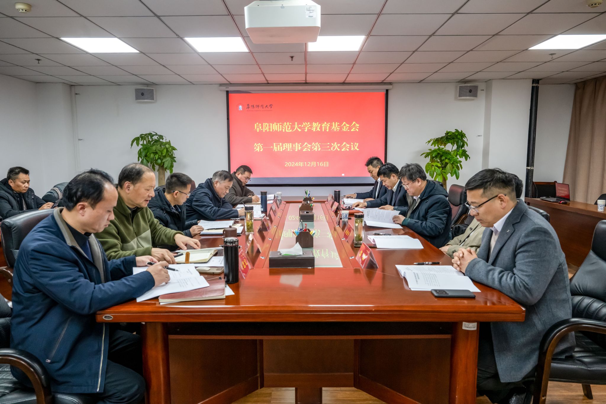 12月16日下午,阜阳师范大学教育基金会第一届理事会第三次会议在我校正行楼1204会议室召开。校党委书记程曦,校党委原书记、基金会理事长周建华,校党委常委、副校长、基金会副理事长张庆旭出席会议,上海校友会副会长魏长洲、秘书长郭强,基金会理事、监事等13人参加线下会议,校友沉浮理事线上参加了会议,会议由张庆旭主持。