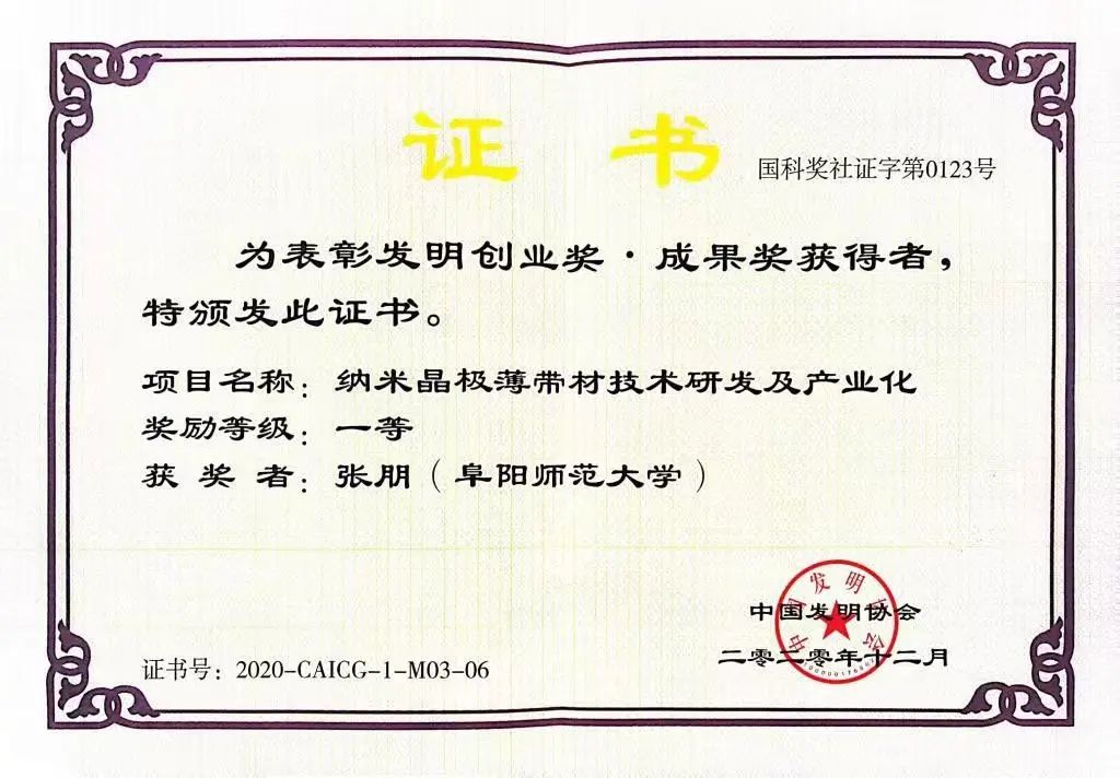 青山灼灼,星光杳杳。在团队成员的不懈努力,攻坚克难下,该项目取得了累累硕果:成功研发突破高性能纳米晶极薄带材技术研发及产业化的关键核心难题,项目研发通过成分优化,并与工艺相结合,制备高饱和磁感和恒导磁特性的两种纳米晶软磁合金新材料,并开发出大功率高频变压器类、电磁兼容类和高精度测量类铁芯制品,为企业新增产值5000余万元。并且该技术获中国发明创业奖成果奖一等奖和中国产学研合作创新成果奖二等奖,课题组张朋老师获评“阜阳市最美科技工作者”和入选安徽省科技副总。项目创新团队获批2024年皖北产业创新团队。项目实施过程中,申请发明专利8项,授权3项,发表相关论文3篇,新增省部级项目立项3个,省级新产品2项。星光不负赶路人,时光不负实干者。成果与荣誉的背后离不开张朋老师的悉心指导和团队成员的努力与拼搏。