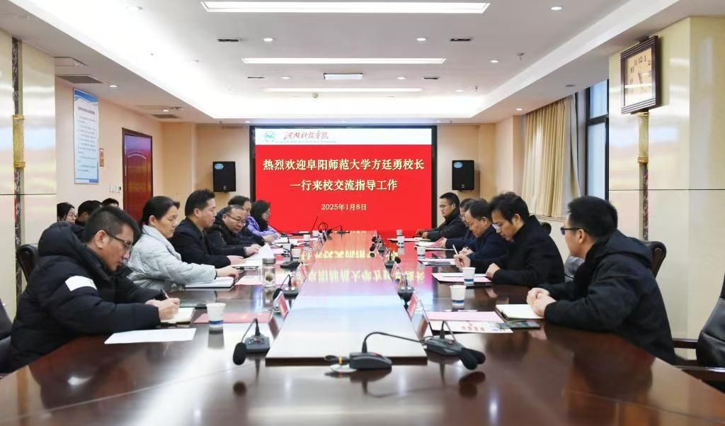 1月8日下午,方廷勇带队到河南科技学院考察交流。河南科技学院党委副书记、校长阚云超会见了方廷勇一行。两校在河南科技学院办公楼901会议室举行座谈会,河南科技学院副校长丁轲出席座谈会。