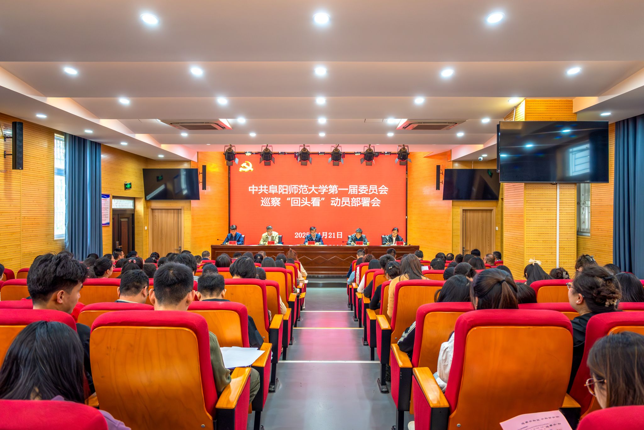 4月21日,校党委巡察“回头看”动员部署会在教育集团召开,校党委常委、纪委书记、监察专员、巡察工作领导小组副组长季爱新出席会议,校党委巡察工作领导小组成员单位负责人、巡察组全体人员、党委巡察工作办公室全体人员、教育集团领导班子及教职工参加会议。巡察组组长魏文霞宣布了《中共阜阳师范大学第一届委员会巡察“回头看”工作方案》,教育集团党委书记徐升作表态发言。