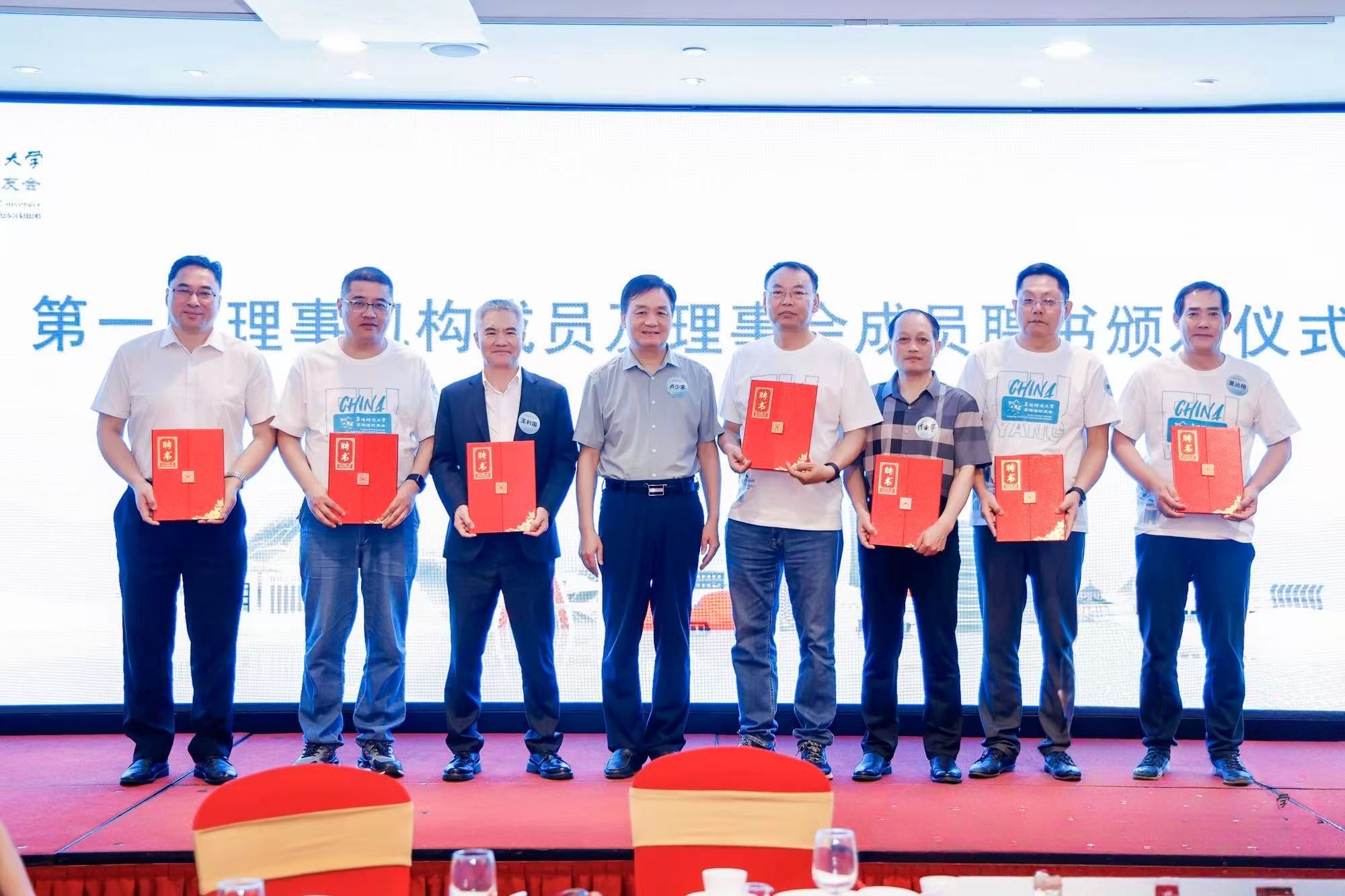 校领导为陈卫理事长、任绍志会长、朱小焱秘书长等理事会成员颁发聘书。