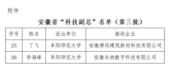 近日,省科技厅、教育厅联合印发《关于印发安徽省“科技副总”名单的通知》,我校2名科研人员入选第三批安徽省“科技副总”。这是继2025年上半年我校5名科研人员认定后,再次2人入选。