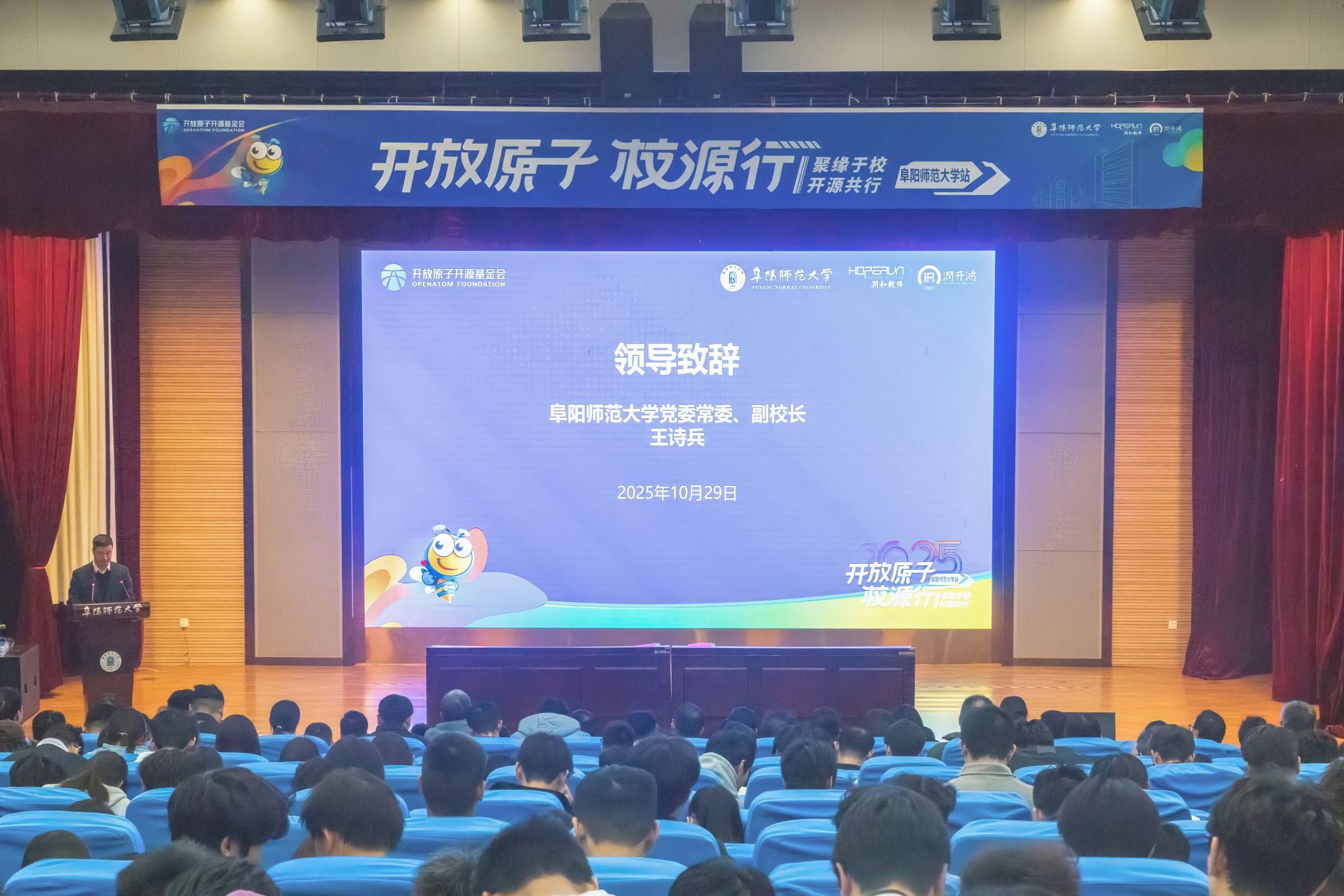 王诗兵在致辞中指出,开源是新质生产力发展的重要引擎,开源理念是高校创新型人才培养的重要催化剂,开源教育需要更多优质资源与行业力量加持,学校将以此次活动为契机,进一步推动开源理念融入人才培养,深化校企协同育人。