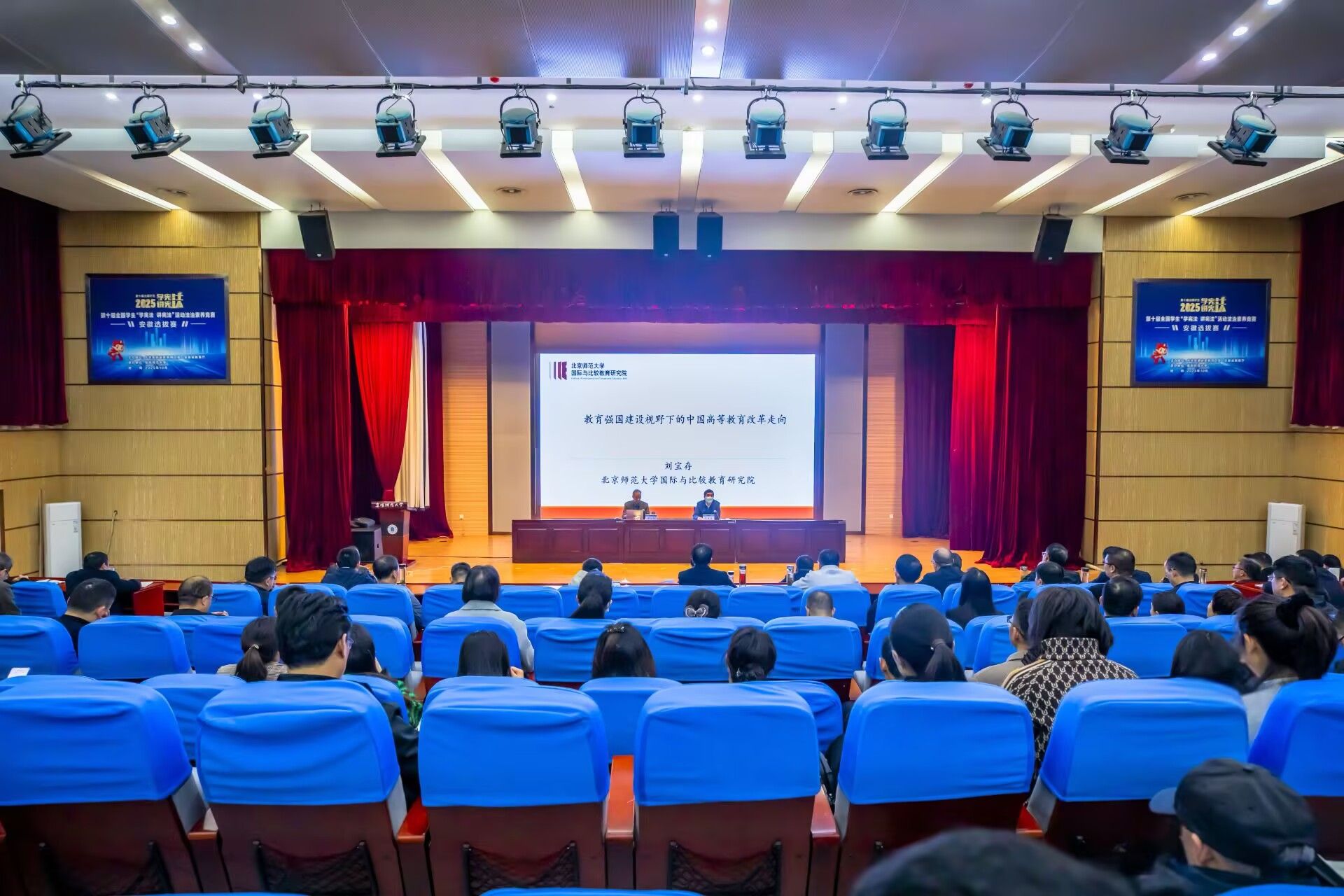 开班仪式结束后,开启培训班首场专题辅导,全校中层干部和培训班学员参加了报告会。教育部人文社会科学重点研究基地北京师范大学国际与比较教育研究院院长、国家重大人才工程特聘教授刘宝存应邀作了题为《教育强国建设视野下的中国高等教育改革走向》的专题辅导报告。报告立足国家战略全局,系统分析了新时代我国高等教育发展面临的机遇与挑战,深入阐释了教育强国建设的基本内涵、国际方位以及教育强国建设的基本思路与高等教育的地位,并围绕高等教育改革的主要政策和支持性措施进行了全面分析。整场报告视野开阔、内容详实,对参训干部准确把握高等教育改革趋势、提升战略思维和履职能力具有重要指导意义。