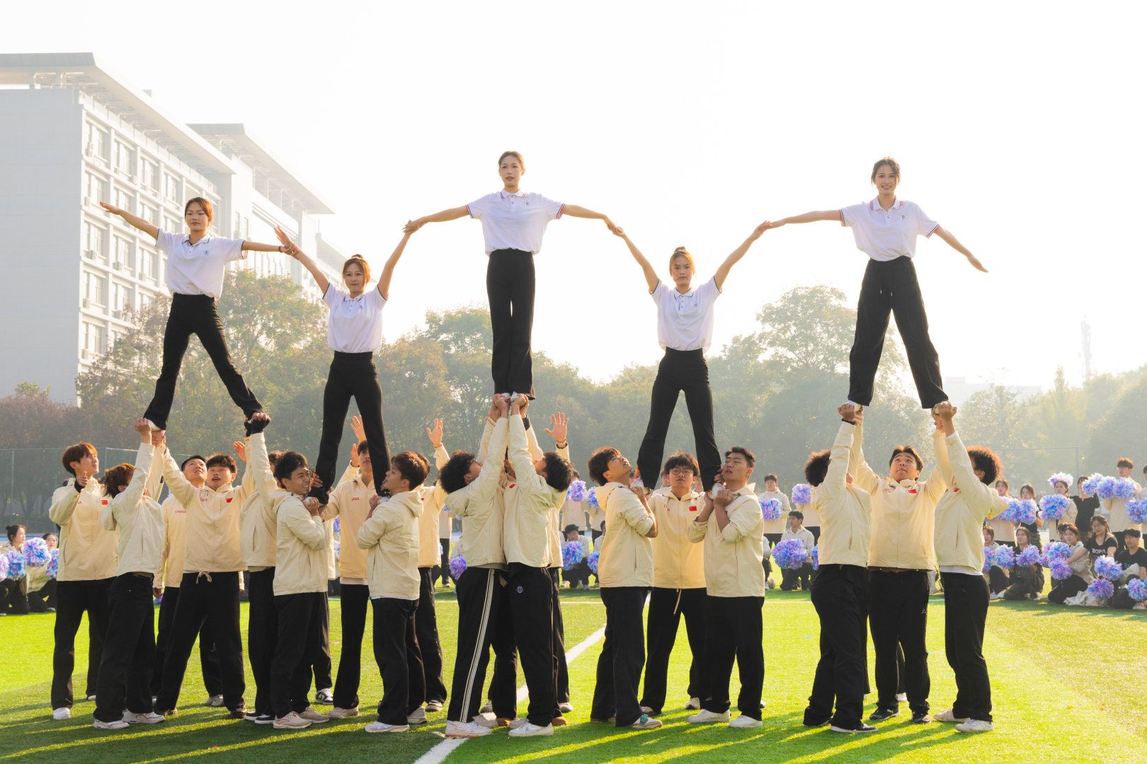 目光聚焦舞台,健美操、啦啦操《青春有你,骄阳似火》将健美操的力和美与啦啦操的灵动完美相融,高难度托举、跳跃与柔美的身姿相结合,每一步都踏出青春的节拍,每一个动作都饱含昂扬的斗志。