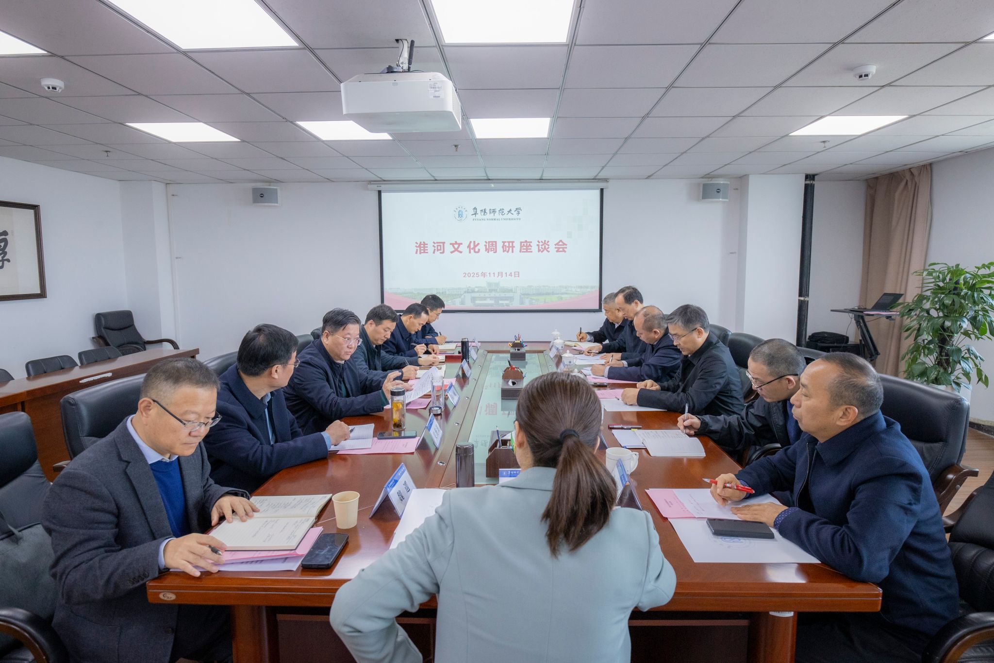 11月14日,新华社安徽分社副社长李亚彪、新华社安徽分社机关党委委员徐金平一行来我校进行淮河文化调研并举行座谈会,阜阳市委常委、宣传部部长白晓云,阜阳市政协一级调研员、我校兼职教授燕少红,阜阳市委宣传部副部长高思杰,阜阳市政协农业农村委主任一级调研员乔印升,阜阳市社科联主席何丽娜以及我校党委书记程曦,校党委常委、副校长王诗兵,国家社科基金重大项目首席专家吴海涛教授和党委宣传部、科研处、皖北文化研究中心等单位有关负责人陪同调研并参加座谈会。