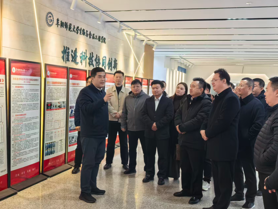 企业家一行参观了学校发展概览、校地合作项目展示和生物与食品工程学院省级重点实验室,详细了解了学校在人才培养、学科建设、教学成果、科研平台建设、技术创新及成果转化等方面的情况。我校合作企业田园居公司创始人、阜阳青年创业者协会会长杨光硕介绍了与我校科技合作项目(340万元)成果及转化情况。青年企业家和团省委部门负责人表示,学校人才荟萃、科研资源丰富,企业贴近市场、应用场景广阔,双方合作潜力巨大。校企双方能够以此次考察交流活动为契机,围绕绿色食品、生命健康等重点领域,在技术研发、成果转化、人才培养等方面开展更深层次的务实合作,促进创新链与产业链精准对接,实现互利共赢。