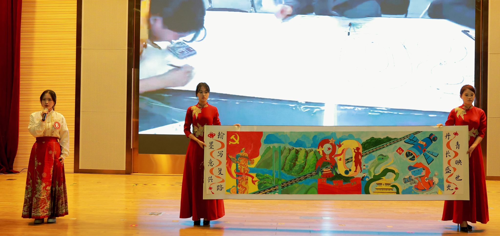大赛在大学生艺术中心器乐组的《就是哪吒》中拉开帷幕。此次大赛由三个环节组成,第一个环节“百家争鸣”,各学院参赛代表展示书画长卷作品并进行现场解说,作品聚焦党和国家的光辉历程与伟大成就,以笔墨绘初心,以丹青颂党恩,生动传递爱国情怀与时代担当,展现我校学子坚定的理想信念与深厚的家国情怀。中场,大学生艺术中心声乐组演绎的《青花瓷》韵味悠长,融传统美学与舞台艺术于一体,尽显典雅文化底蕴。第二环节“挥墨西湖”,各参赛代表现场进行书法展示,一笔一划尽显笔墨韵味,一撇一捺皆含赤子情怀,挥毫泼墨间尽展青春风采与文化素养。“教师风采”环节中,姚庆良、秦予人、李秋风三位老师上台为大家进行了现场书法展示,笔走山河气,墨蕴古今情,起承转合间气象万千,尽展书画艺术家挥毫落纸之神韵。