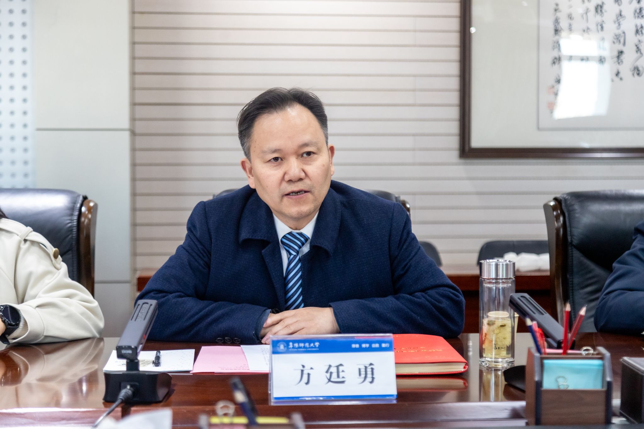 方廷勇对代表团的来访表示欢迎。他回顾了两校自2023年开展合作以来的交流历程,并介绍了阜阳深厚的历史文化底蕴以及我校的发展近况。他强调,阜阳师范大学立足淮河文化发源地,坚持立德树人根本任务,紧密围绕区域发展需求优化学科布局,形成了师范教育与应用型学科特色鲜明、协调发展的办学格局。他希望双方共同搭建常态化、机制化的交流平台,建立稳定顺畅的沟通协调机制;聚焦国际化人才培养,积极探索学分互认、学生交换与联合培养等合作项目,拓宽师生互访研修渠道;加强跨境人文交流,通过系列文化互鉴活动增进相互理解,促进青年互动,为双方长期合作奠定坚实的人文基础。