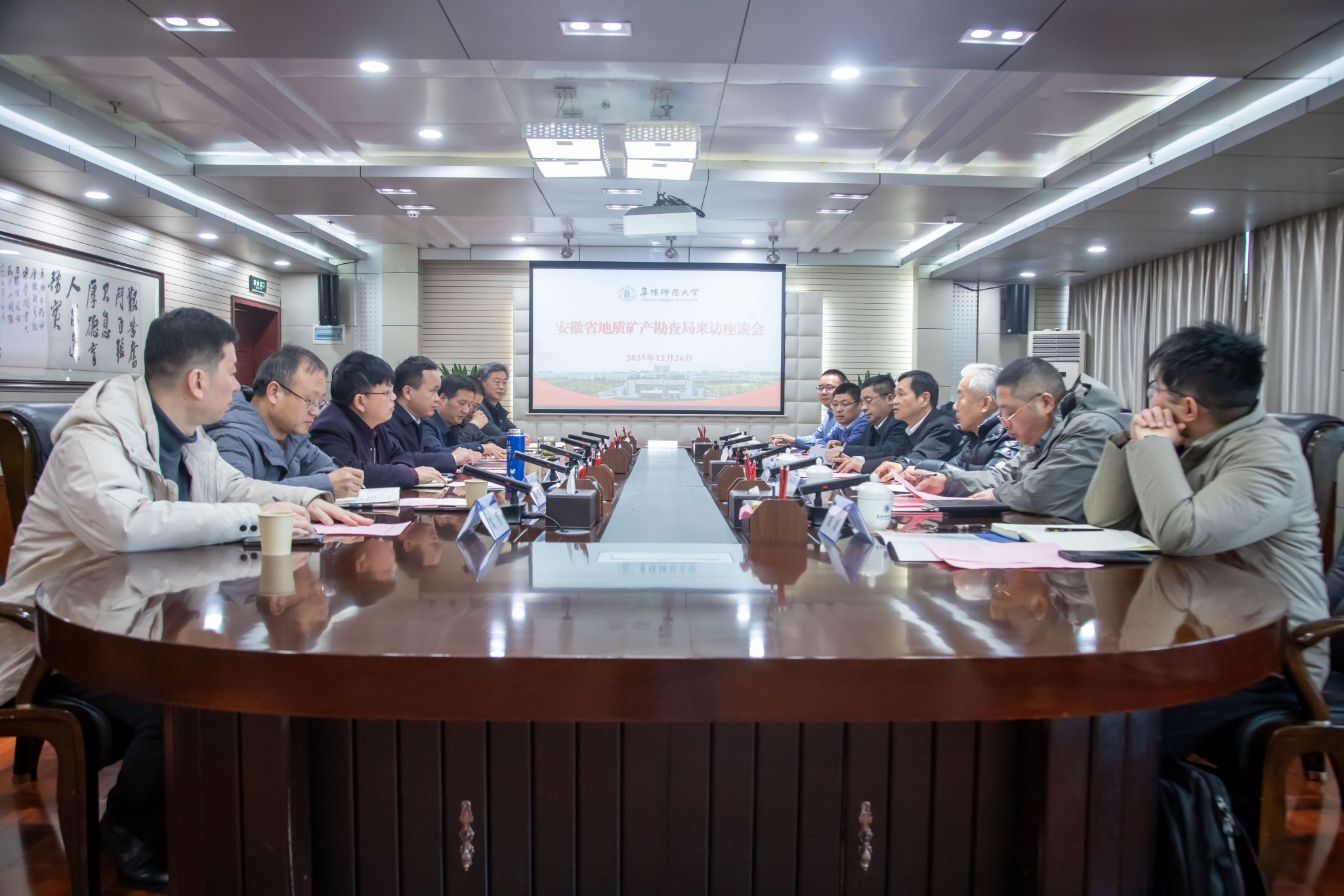 12月26日,安徽省地质矿产勘查局党委委员、副局长叶朝晖一行来校调研交流,校党委副书记孙林华,校党委常委、副校长王诗兵接待了来宾,双方在西湖校区正行楼1202会议室举行座谈,就地质矿产勘查与资源利用、地理信息与测绘应用、生态修复与地面沉降防治等事宜进行研讨交流。我校相关职能部门和有关学院负责人参加座谈交流。