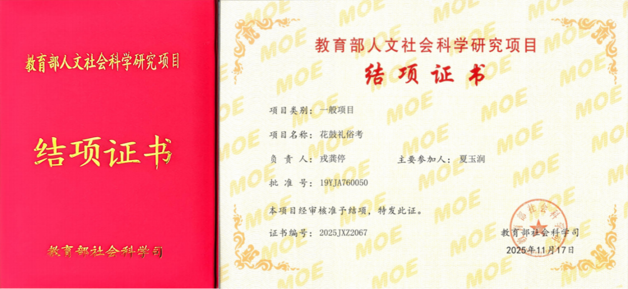 近日,经教育部社会科学司审核把关,公布了关于教育部人文社会科学研究一般项目结项情况的通报,音乐舞蹈学院戎龚停教授和谭磊副教授分别主持的“花鼓礼俗考”“生态文明视角下长三角示范区运动休闲特色小镇耦合发展研究”等2项教育部人文社科研究项目均顺利通过结项验收。