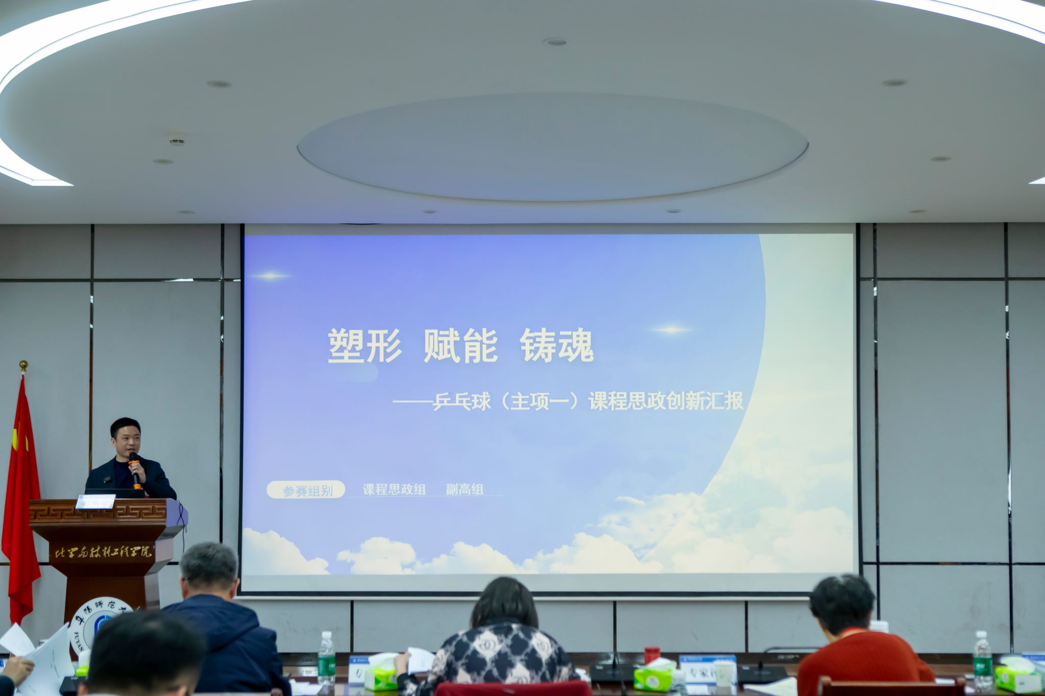 决赛现场,参赛教师精神饱满、各展所长,汇报内容精彩纷呈。教师们围绕课程理念、教学内容、教学方法、考核评价及课程思政等方面,全面展示教学创新成果,充分展现出勇于探索、精益求精的教学风貌,获得评委与观摩人员一致好评。