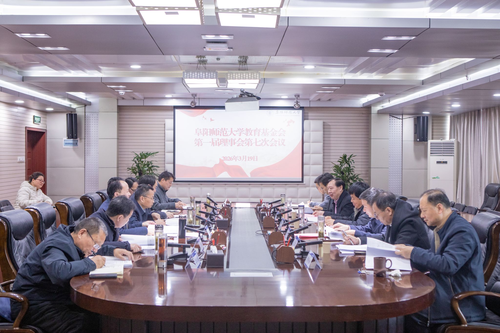 会议听取了基金会秘书长李国强关于2026年基金会工作计划报告,财务处处长、基金会理事王思宏关于2025年度基金会财务报告,审计处副处长朱龙关于2025年度基金会审计报告;审议并通过了《阜阳师范大学教育基金会2025年度工作报告》《阜阳师范大学教育基金会审计报告》《阜阳师范大学教育基金会专项信息报告》。