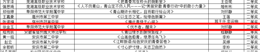 14名学子斩获省级奖项,展现青春风采。笔耕不辍,终有回响。附中学子紧扣环保主题,以独特的视角、细腻的笔触和深刻的思考,描绘了江淮大地的绿水青山,抒发了对美丽中国建设的青春担当,共有14名同学凭借出色的作品脱颖而出,分获省级一、二、三等奖及优秀奖。