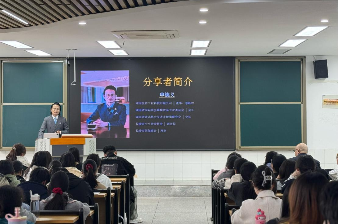 职业规划讲座上,申德义结合自身从外语专业毕业生到自主创业实干家的成长经历,围绕职业选择、能力提升、心态调适等内容开展务实分享。他提出,美好品质在磨砺中锤炼,号召大家树立终身学习意识、秉持实干作风,并以“须知少日拏云志,曾许人间第一流”勉励学子。