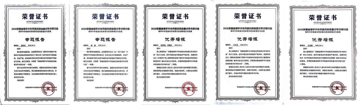 3月28日,安徽省铸牢中华民族共同体意识学术研讨会在安庆举行,来自云南民族大学、西藏大学、中南民族大学、西北民族大学等高校近百名专家学者参会。我校安徽省铸牢中华民族共同体意识理论研究培育智库相关专家学者和研究生代表受邀参加研讨会。在本次研讨会优秀论文评选中,我校共有5篇论文获奖,其中一等奖2项。