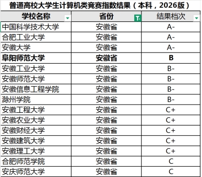 3月30日,全国高等学校计算机教育研究会等权威机构联合发布了2026版普通高校大学生计算机竞赛指数结果。我校凭借在ICPC国际大学生程序设计竞赛、中国高校计算机大赛——团体程序设计天梯赛、全国大学生软件测试大赛和“蓝桥杯”全国软件和信息技术专业人才大赛等赛事中的优异表现,再次跻身全国高校TOP18%行列,连续三版(2024-2026版)被评定为B档次,位列中国科学技术大学、合肥工业大学、安徽大学之后,居全省第四。