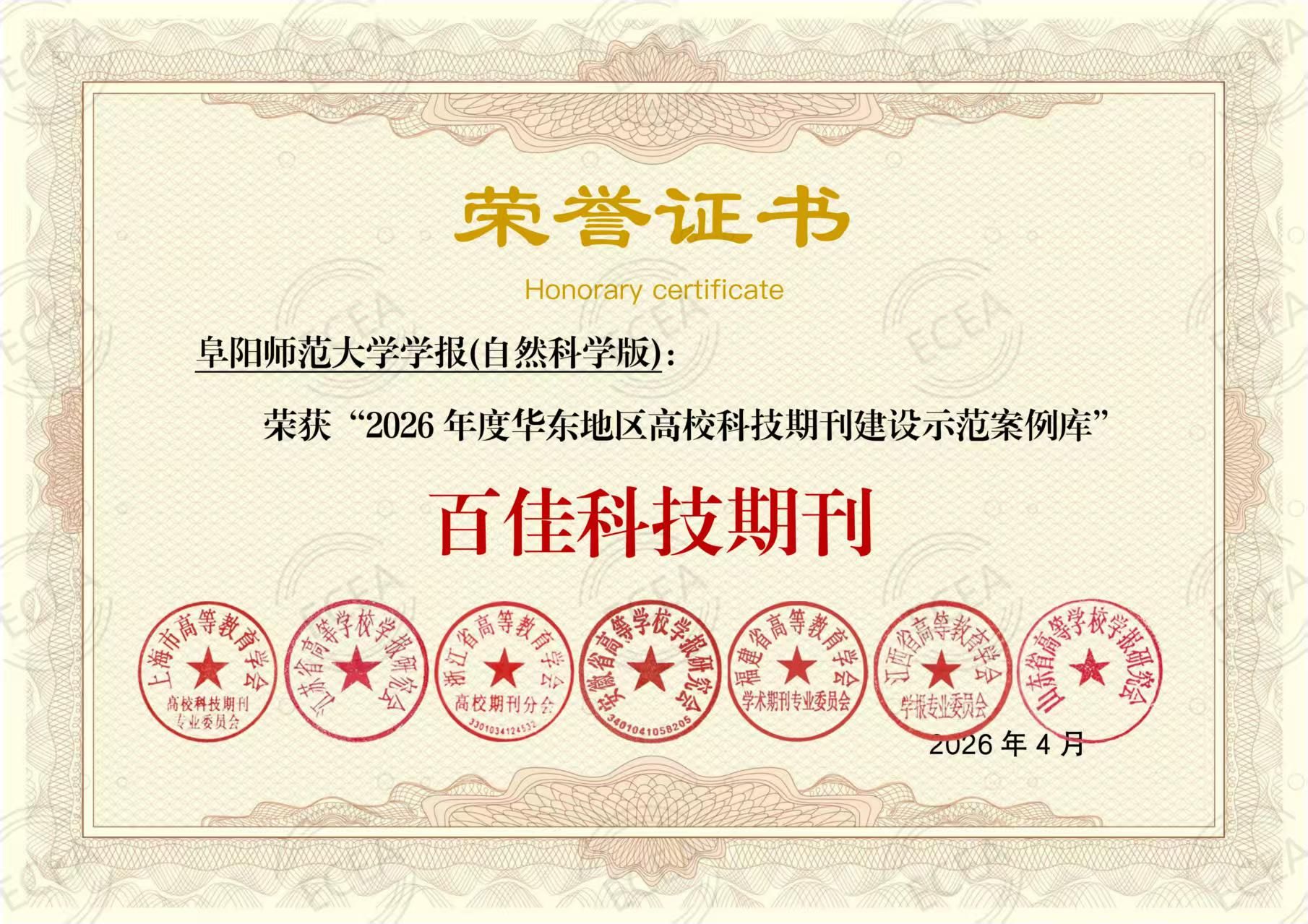 4月24日,在“人工智能时代高校学术期刊高质量发展”研讨会暨2026年华东编协学术年会上,华东编协正式发布了“2026年度华东地区高校科技期刊建设示范案例库•百佳科技期刊”入库结果,《阜阳师范大学学报》(自然科学版)入选。