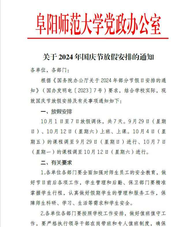 关于2024年国庆节放假安排的通知