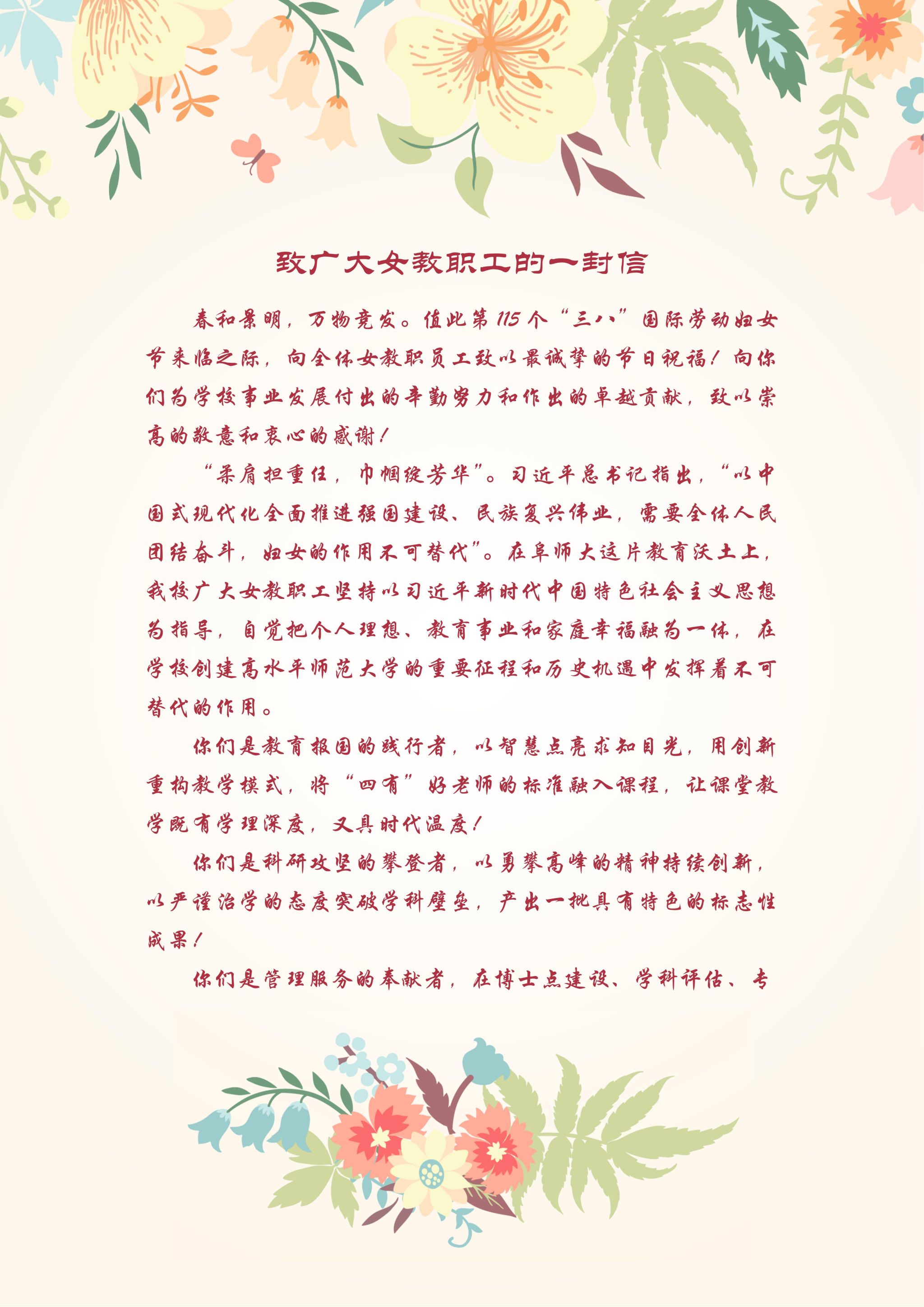 致广大女教职工的一封信