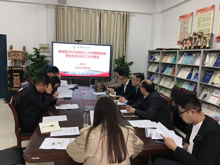 10月16日下午,商学院部署2020级新生入学资格复查及学生档案完善工作。学院领导程向阳、宋东锋、张士连、陈海燕及全体新生辅导员参加会议,会议由学院党委副书记宋东锋主持。