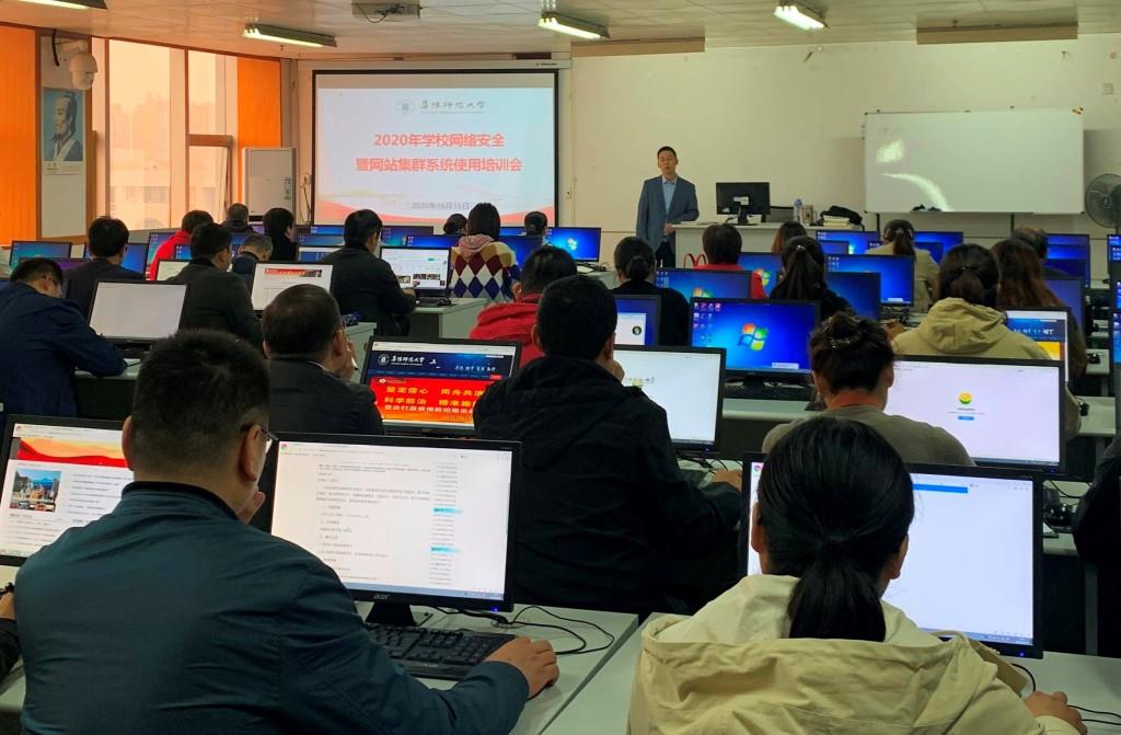 为切实强化校园网络安全意识,加快推进学校网站集群系统上线使用,提升学校网络平台建设、服务和管理水平,10月15日上午,我校2020年网络安全暨网站集群系统使用培训会在景行楼710成功举行。全校各二级单位新闻宣传负责人及网站管理员、新闻通讯员参加了培训会。培训会由党委宣传部副部长刘张飞主持。