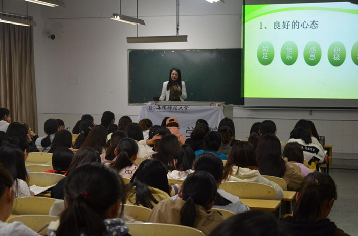 安徽省人大代表、小学数学特级教师、安庆市数学学科带头人,桐城市实验小学程艮凤副校长做了《怀揣教育信念,成就幸福人生》的主题报告。程艮凤从幸福的内驱力、终身学习、立足课堂和潜心研究四个方面,与同学们分享了自己作为一名小学数学教师专业成长的心路历程。报告会用充满诗意的语言、生动真实的案例和美丽动人的传说,讲述了“我与我的学校”、“我与我的老师”、“我与我的同事”、“我与我的学生”、“我与我的目标”、“我与我的奋斗”等一个个感人肺腑的故事,诠释了一名小学特级教师的良好专业品性与深厚教育情怀。