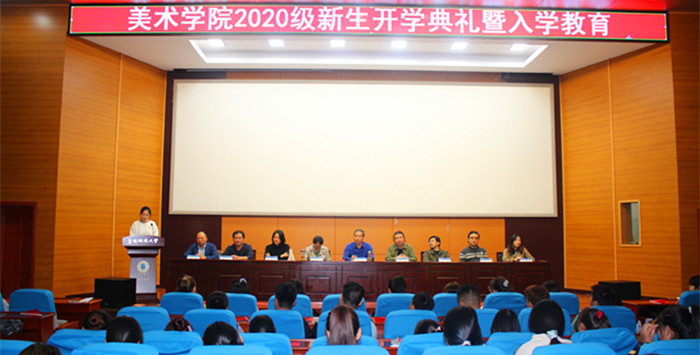 10月9日,美术学院在躬行楼报告厅举办2020级新生开学典礼暨入学教育。美术学院党委副书记曹礼品、院长曲强出席了典礼,美术学院各教研室主任、教务秘书、新生辅导员和教师代表程芙蓉教授以及该院233名新同学和10位辅导员助理参加了典礼。开学典礼由曹礼品主持。