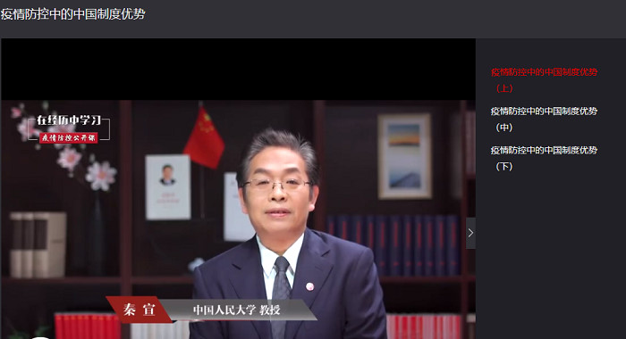 近日,计科专业学生第一党支部党员在学习强国平台上共同学习了“在经历中学习——疫情防控公开课”第九讲《疫情防控中的中国制度优势》。疫情防控是对国家治理体系和治理能力的一种考验,中国人民大学秦宣教授从党中央统一部署,协调各方;把人民群众的生命安全和身体健康放在第一位;全民动员,齐心协力;坚持全国一盘棋,调动各方面积极性;坚持党指挥枪;在全面深化改革中,完善国家制度和治理体系六个方面具体阐述了中国特色社会主义制度和国家治理体系的优势。
