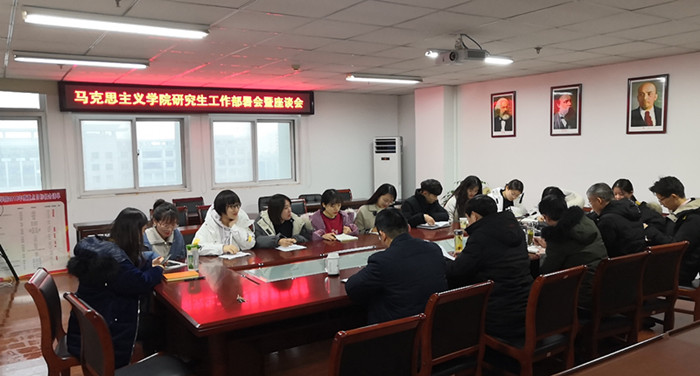 2020年1月6日下午3:00,马克思主义学院研究生工作部署会暨座谈会在正行楼912会议室举行。参加此次座谈会的有马克思主义学院院长闫成俭教授、夏小华教授、朱宗友教授、王继云老师、徐涛老师以及马克思主义学院2019级全体硕士研究生。座谈会由朱宗友主持。