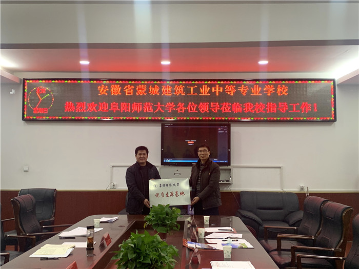 会后,陈旭阳代表学校同蒙城建筑工业中等专业学校签订优质生源基地共建协议并授予优质生源基地牌匾。